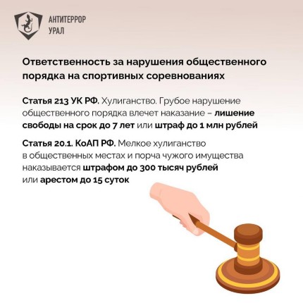 Правила безопасности на спортивных объектах При посещении спортивных соревнований зрители обязаны соблюдать определённые правила безопасности, который должен знать каждый. Рассказываем о самых основных в информационных карточках.
