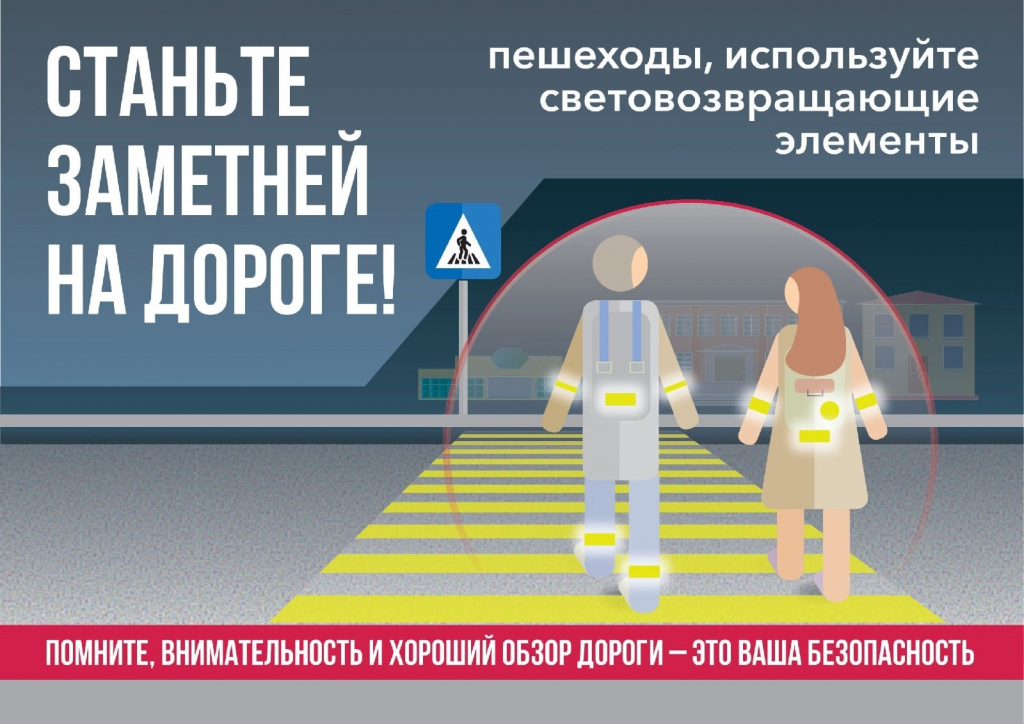 - с пешеходами - об обязательном использовании световозвращающих элементов в темное время суток, а также о соблюдении мер и правил безопасности при переходе проезжей части.